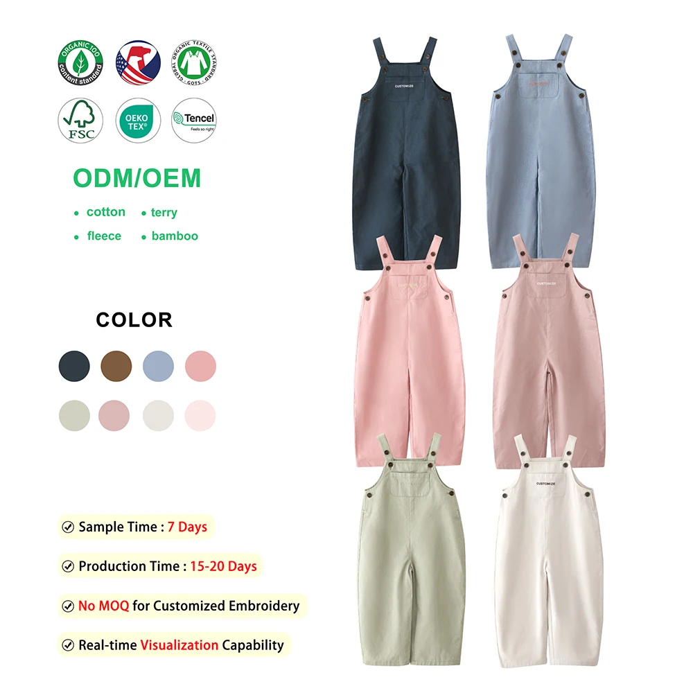 Skin-Friendly 100% Cotton Girls Overall Jumpsuits with Adjustable Straps Loose Baby Overalls for Daily & Spring & Fall